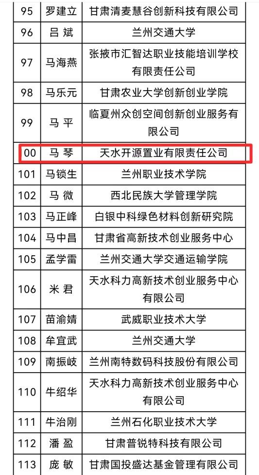 近日,甘肅省科技創(chuàng)業(yè)孵化協(xié)會印發(fā)《關(guān)于公布2025年度甘肅省創(chuàng)新創(chuàng)業(yè)導(dǎo)師名單的通知》,經(jīng)省級相關(guān)主管部門遴選評審,天水經(jīng)濟(jì)發(fā)展公司及子公司開源盛澤、開源置業(yè)王虎寅、王文娟、馬琴3人成功獲聘省級創(chuàng)新創(chuàng)業(yè)導(dǎo)師,聘期內(nèi)將納入省級創(chuàng)業(yè)導(dǎo)師庫統(tǒng)一管理。
